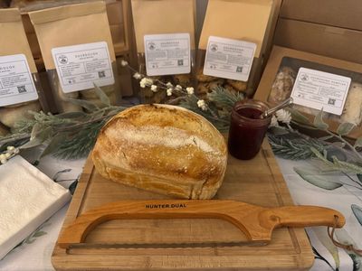 Every loaf is hand‑shaped, cold‑fermented overnight, and baked to golden perfection. No commercial yeast. No shortcuts. Just real ingredients, natural fermentation, and the craft of artisan baking.
